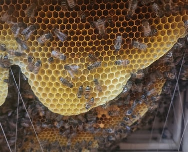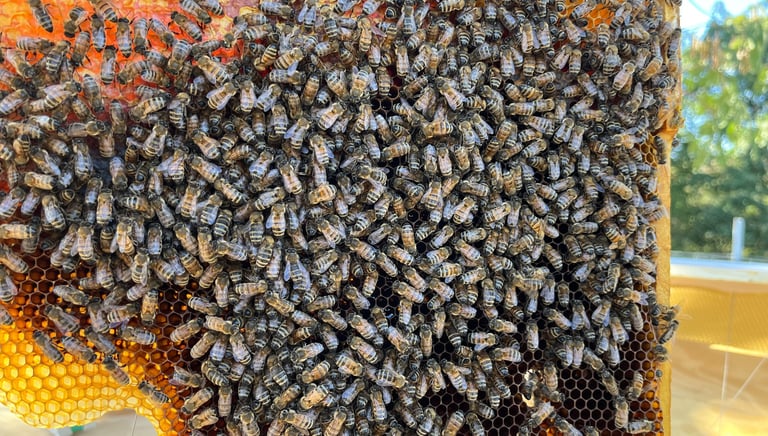 Our method of beekeeping closely aligns with those of Dr. Leo Sharashkia’s natural beekeeping. We utilize horizontal hives, never medicate, and do not feed our bees sugar. Do to this, the honey we get from our bees is 100% naturally made from our broad spectrum of plant species, and chemical free. We practice this sustainable method of beekeeping through catching swarms, never buying bees and, when harvesting honey, ensuring to leave enough for bees to survive without supplemental feeding.
